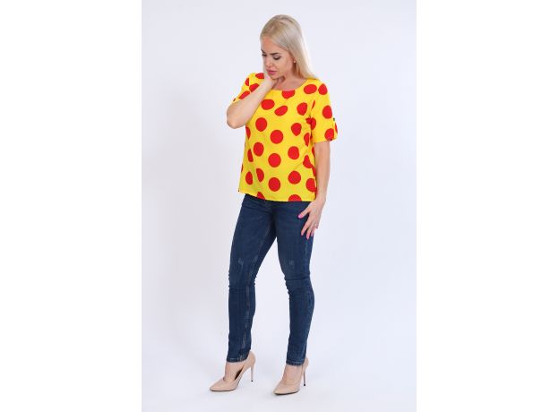 Туника женская прямого силуэта, короткий рукав на патах, округлый воротник, сзади застежка на молнию. Легкая и удобная. Рост модели на фото 165 см, размер 48