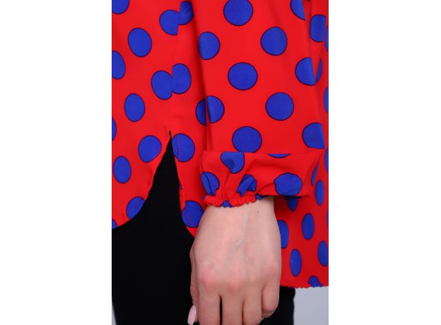 Туника свободного кроя. Округлый ворот, у ворота завязки. Длинный рукав на резинке. Низ округлый, по бокам разрезы. Спинка чуть длиннее переда. Удобно и практично.