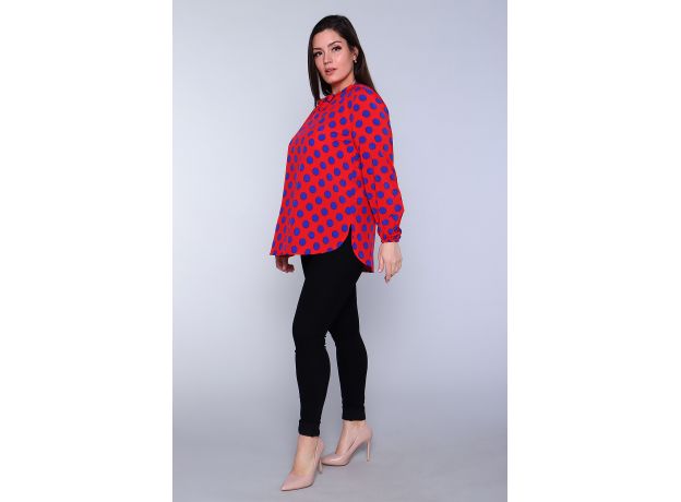 Туника свободного кроя. Округлый ворот, у ворота завязки. Длинный рукав на резинке. Низ округлый, по бокам разрезы. Спинка чуть длиннее переда. Удобно и практично.