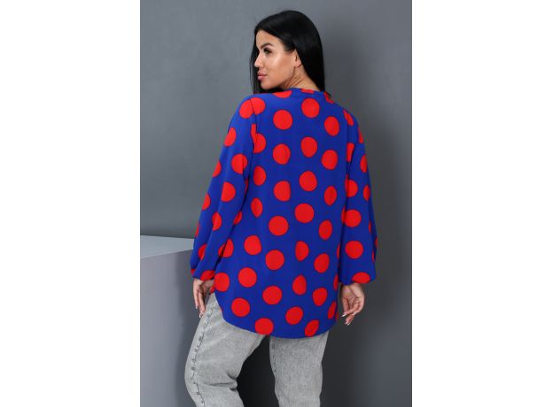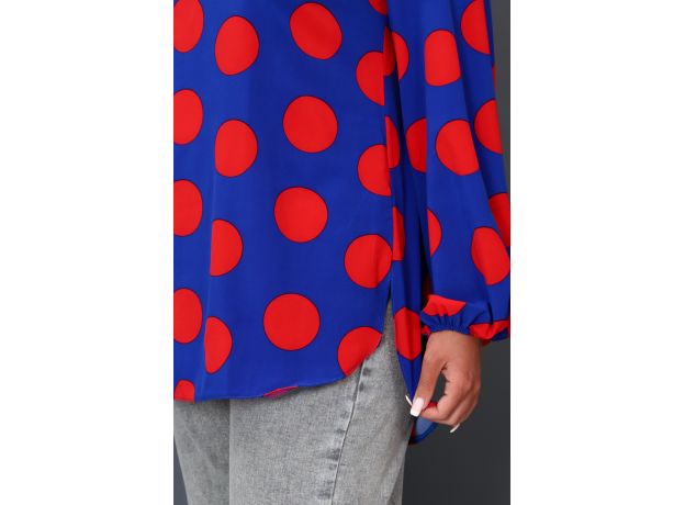 Туника свободного кроя. Округлый ворот, у ворота завязки. Длинный рукав на резинке. Низ округлый, по бокам разрезы. Спинка чуть длиннее переда. Удобно и практично.