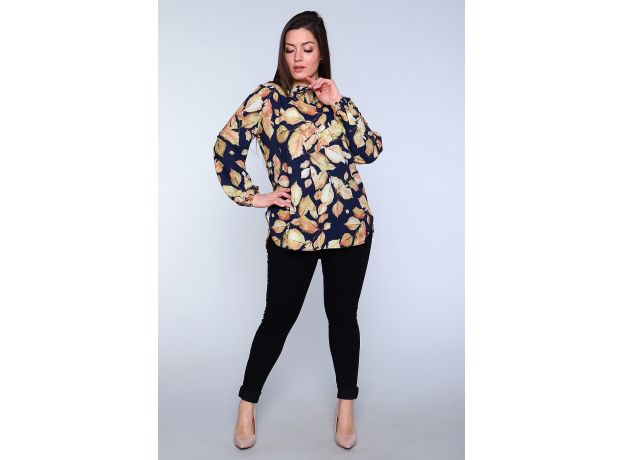 Туника свободного кроя. Округлый ворот, у ворота завязки. Длинный рукав на резинке. Низ округлый, по бокам разрезы. Спинка чуть длиннее переда. Удобно и практично.
