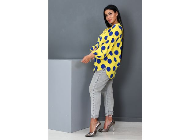 Туника свободного кроя. Округлый ворот, у ворота завязки. Длинный рукав на резинке. Низ округлый, по бокам разрезы. Спинка чуть длиннее переда. Удобно и практично.