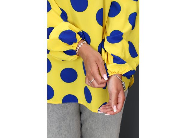 Туника свободного кроя. Округлый ворот, у ворота завязки. Длинный рукав на резинке. Низ округлый, по бокам разрезы. Спинка чуть длиннее переда. Удобно и практично.