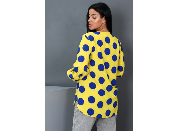 Туника свободного кроя. Округлый ворот, у ворота завязки. Длинный рукав на резинке. Низ округлый, по бокам разрезы. Спинка чуть длиннее переда. Удобно и практично.