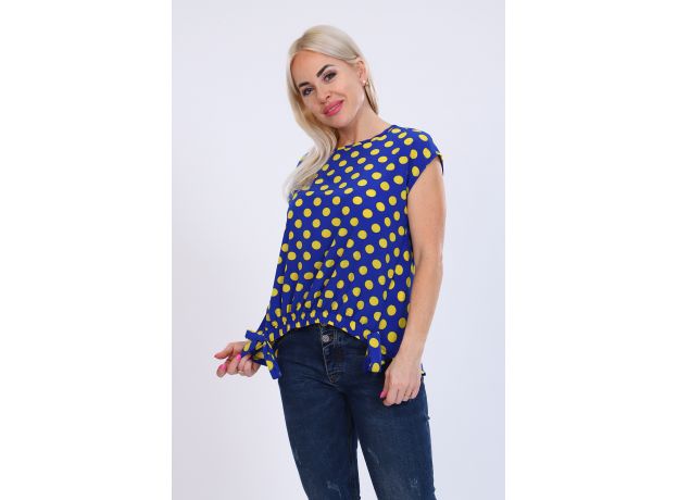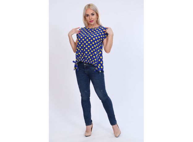 Легкая летняя туника, свободного кроя, округлый ворот, без рукавов. Низ передней полочки декорирован резинкой с завязками. Практичная и удобная.