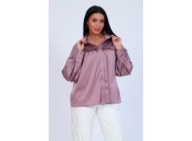 Туника женская прямого силуэта на пуговицах, длинный рукав на манжете с пуговицами, рубашечный воротник с рюшами. Кокетка до линии рукава в виде рюшей. Стильно и практично.