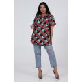 Туника женская прямого силуэта с спущенным коротким рукавом на манжете. Воротник рубашечного типа, на передней полочке планка декорирована тремя пуговицами .Легкая и удобная.