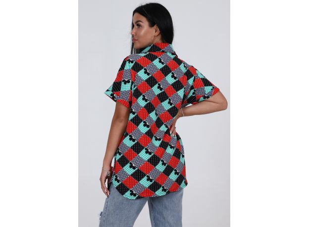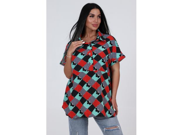 Туника женская прямого силуэта с спущенным коротким рукавом на манжете. Воротник рубашечного типа, на передней полочке планка декорирована тремя пуговицами .Легкая и удобная.