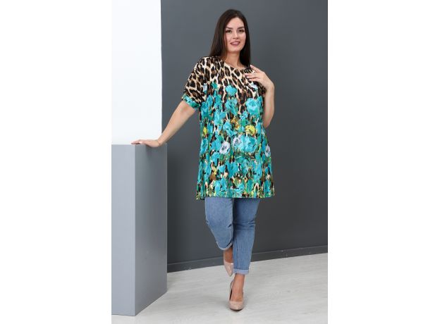 Туника женская прямого силуэта, округлый воротник, спущенный рукав на манжете. Легкая и удобная.