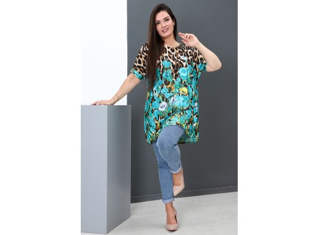 Туника женская прямого силуэта, округлый воротник, спущенный рукав на манжете. Легкая и удобная.