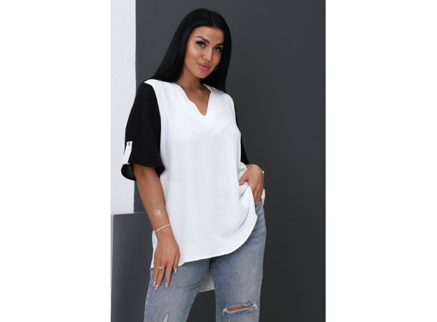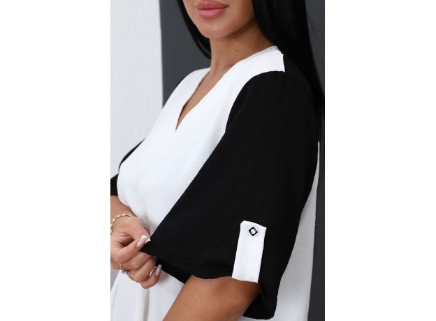 Туника женская комбинированная, расклешенного типа, рукав 3/4,V-образный воротник. Задняя полочка длиннее передней. Легкая и удобная.
