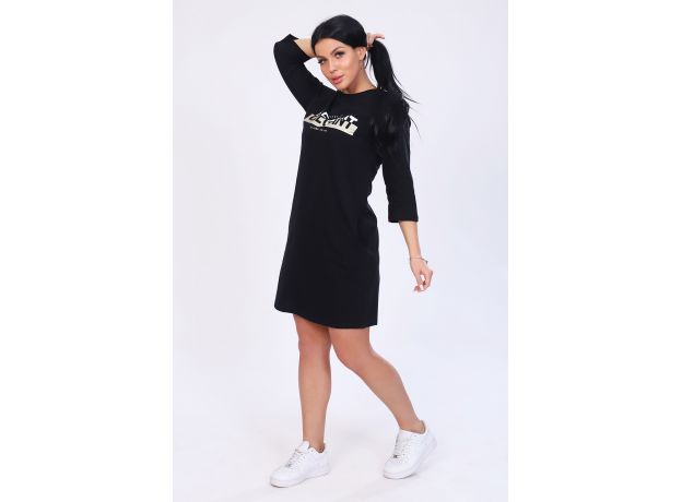 Молодежная туника из кулирки 100% хлопок. Туника полуприлегающего силуэта длиной до колен, рукав 3/4, вырез горловины круглый, два кармана. Дизайн туники дополнен стильным, элегантным принтом