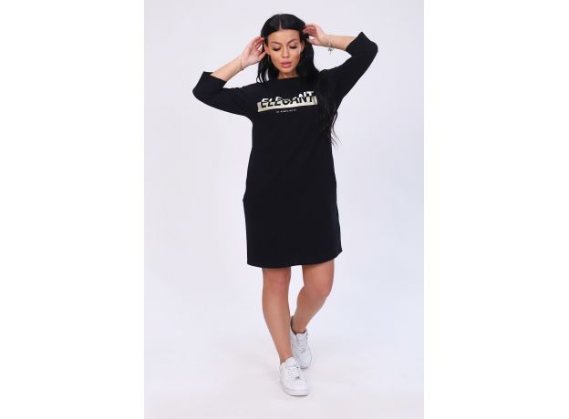 Молодежная туника из кулирки 100% хлопок. Туника полуприлегающего силуэта длиной до колен, рукав 3/4, вырез горловины круглый, два кармана. Дизайн туники дополнен стильным, элегантным принтом.