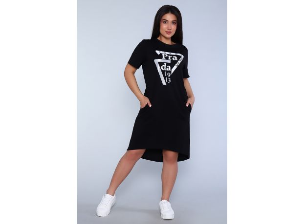 Стильная, красивая туника выполнена из кулирного полотна (100% хлопок). На полочке ненавязчивый принт, два кармана в боковых швах.