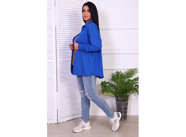 Туника рубашечного кроя, оверсайз, с длинным рукавом. Фигурный низ, застегивается на пуговицы, два нагрудных кармана.