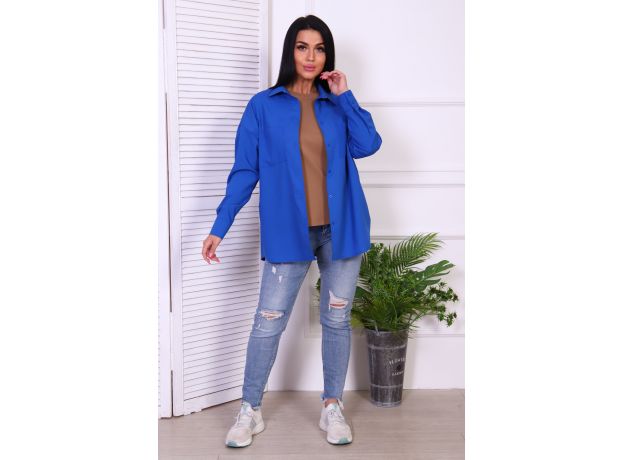 Туника рубашечного кроя, оверсайз, с длинным рукавом. Фигурный низ, застегивается на пуговицы, два нагрудных кармана.