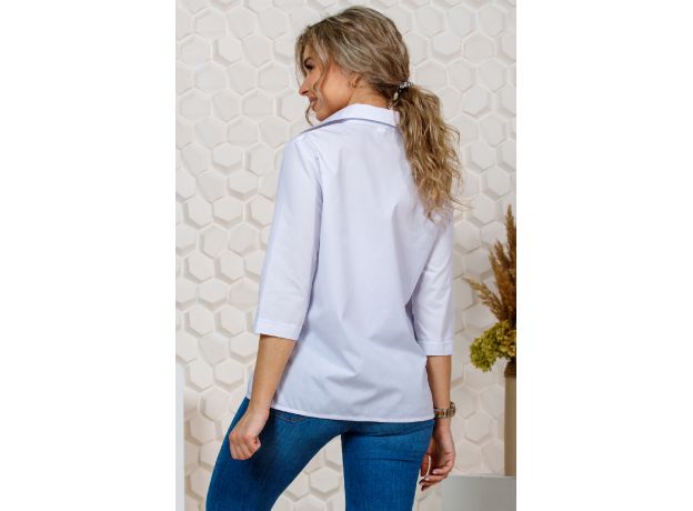 Рубашка белая офисная на пуговицах, низ прямой, с воротником, рукав 3/4.