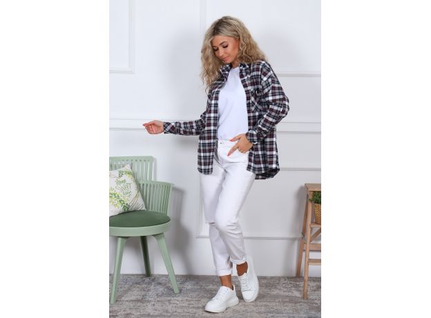 Рубашка оверсайз, тёплая, в клетку, из ткани премиального качества - с начесом с изнанки,100% хлопок (фуле). Рубашка с воротником, рукав длинный, 2 кармана на груди, спинка длиннее полочки.