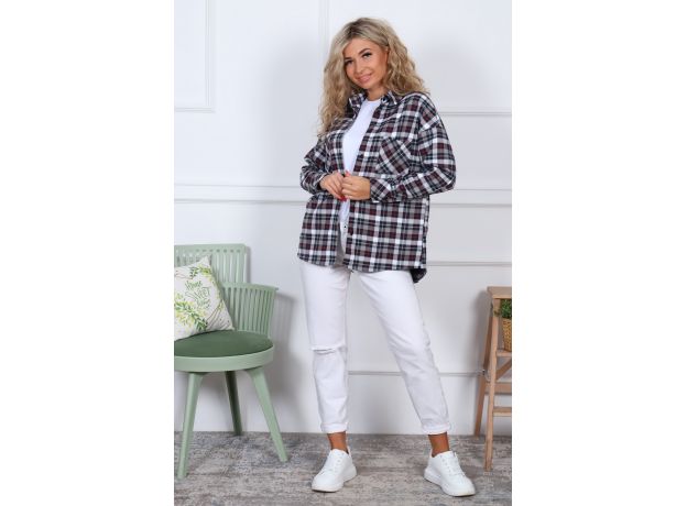 Рубашка оверсайз, тёплая, в клетку, из ткани премиального качества - с начесом с изнанки,100% хлопок (фуле). Рубашка с воротником, рукав длинный, 2 кармана на груди, спинка длиннее полочки.