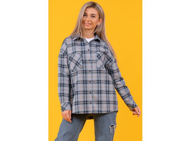 Рубашка оверсайз, тёплая, в клетку, из ткани премиального качества - с начесом с изнанки,100% хлопок (фуле). Рубашка с воротником, рукав длинный, 2 кармана на груди, спинка длиннее полочки.