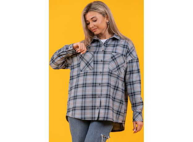 Рубашка оверсайз, тёплая, в клетку, из ткани премиального качества - с начесом с изнанки,100% хлопок (фуле). Рубашка с воротником, рукав длинный, 2 кармана на груди, спинка длиннее полочки.
