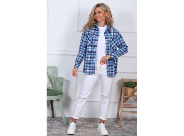 Рубашка оверсайз, тёплая, в клетку, из ткани премиального качества - с начесом с изнанки,100% хлопок (фуле). Рубашка с воротником, рукав длинный, 2 кармана на груди, спинка длиннее полочки.