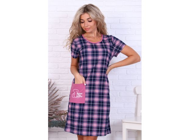 Туника в клетку, женская, с коротким рукавом, с карманом с принтом. Туника комфортная и мягкая на ощупь выполнена из трикотажного полотна, 100% хлопок. Модель в модной стильной расцветке. Размерная сетка включает большие размеры.