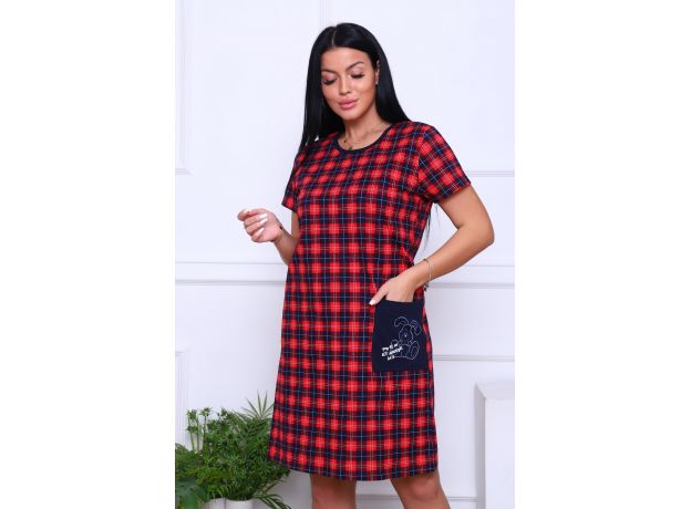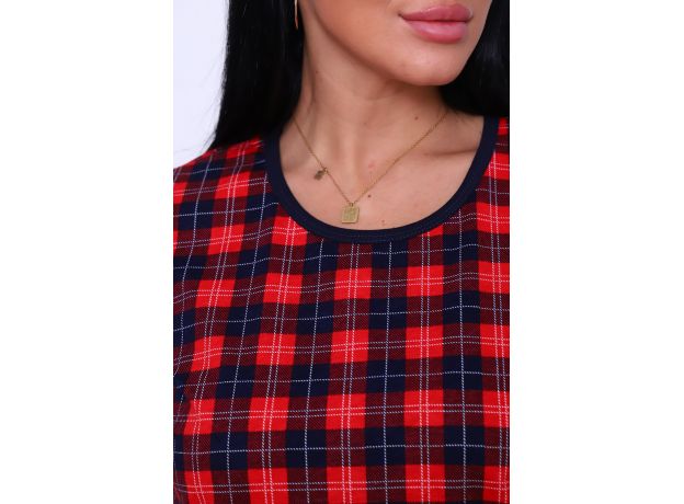 Туника женская в клетку с актуальным новогодним принтом заяц на кармашке. Милая уютная домашняя одежда подарит радость Вам и вашим близким! Материал - кулирка, 100% хлопок.