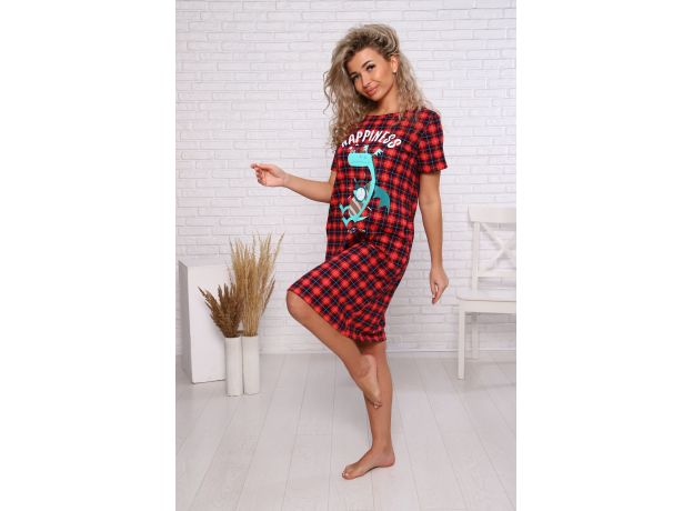 Туника женская в клетку Дракон. Прямого кроя с очаровательным принтом на груди, короткий рукав, карманы в боковых швах. Комфортная длина, 100% хлопок.