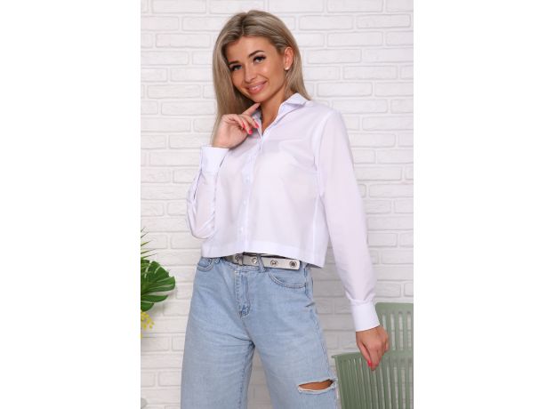 Туника-рубашка белая укороченная с длинными рукавами. Модный укороченный силуэт подчёркивает фигуру, визуально удлинят ноги. Рубашка универсальная - со всем сочетается и подходит для любых случаев. Мало мнётся и лгко гладится, благодаря своему смешанному составу. Данная модель есть и с коротким рукавом (артикул 57085).