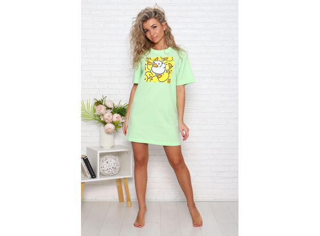Туника женская свободного кроя, средней длины, короткий рукав, с весёлой печатью на полочке. Комфорт 100%-ого хлопка.