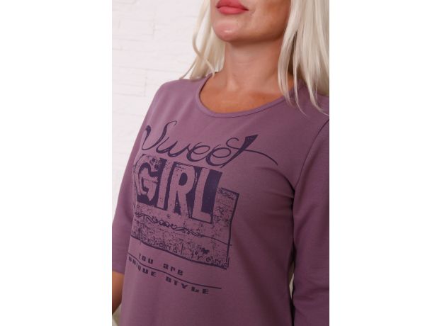 Туника из гладкокрашеного футера 2-х нитки, рукав 3/4, на полочке принт