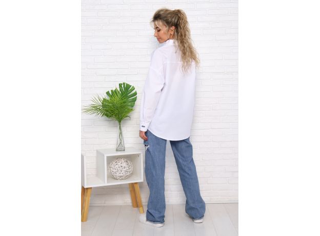 Туника - рубашка женская свободного стиля со стильным воротником - поло, нижняя планка полочки с декоративной репсовой лентой с печатью и пуговками. Отличительная особенность рубашки - наличие двух комфортных боковых карманов, удобной ширины и достаточной глубины: в карман полностью помещается смартфон и пр. Декоративная отделка ленточкой также есть у одного из карманов и у манжет на рукавах. Данная модель из ткани - тиси легко утюжится и не особо мнётся. Стильная рубашка отлично сочетается и с джинсами, и с классическими брюками или юбками.