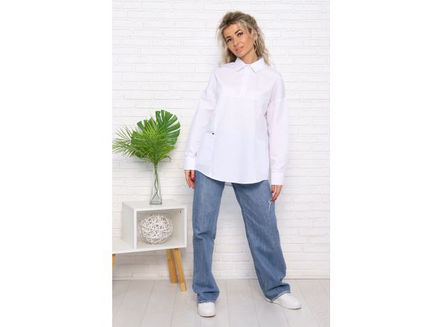 Туника - рубашка женская свободного стиля со стильным воротником - поло, нижняя планка полочки с декоративной репсовой лентой с печатью и пуговками. Отличительная особенность рубашки - наличие двух комфортных боковых карманов, удобной ширины и достаточной глубины: в карман полностью помещается смартфон и пр. Декоративная отделка ленточкой также есть у одного из карманов и у манжет на рукавах. Данная модель из ткани - тиси легко утюжится и не особо мнётся. Стильная рубашка отлично сочетается и с джинсами, и с классическими брюками или юбками.