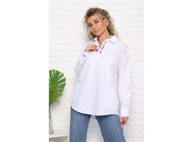 Туника - рубашка женская свободного стиля со стильным воротником - поло, нижняя планка полочки с декоративной репсовой лентой с печатью и пуговками. Отличительная особенность рубашки - наличие двух комфортных боковых карманов, удобной ширины и достаточной глубины: в карман полностью помещается смартфон и пр. Декоративная отделка ленточкой также есть у одного из карманов и у манжет на рукавах. Данная модель из ткани - тиси легко утюжится и не особо мнётся. Стильная рубашка отлично сочетается и с джинсами, и с классическими брюками или юбками.