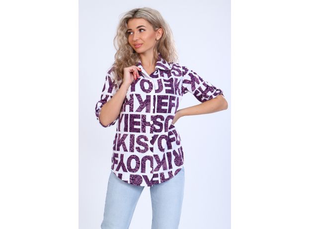 Женская трикотажная туника на пуговицах свободного силуэта. Короткие рукава собраны патой, которую можно расстегнуть, удлинив тем самым рукав. Прекрасно подойдет для повседневной носки на работу, в офис или прогулку.