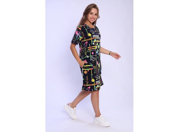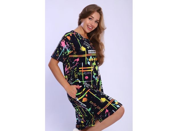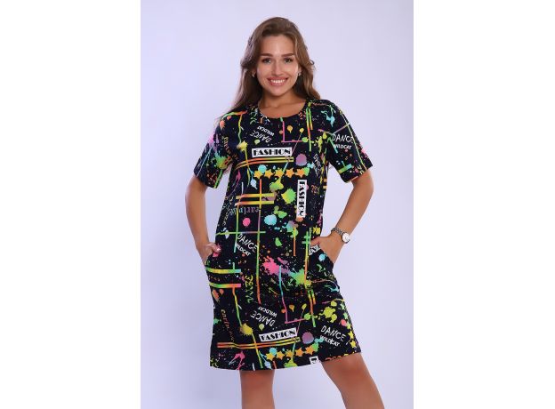 Туника полуприлегающего силуэта с короткими рукавами на спущенном плече. Разрезы и карманы в боковых швах. Комфортна для повседневной носки.