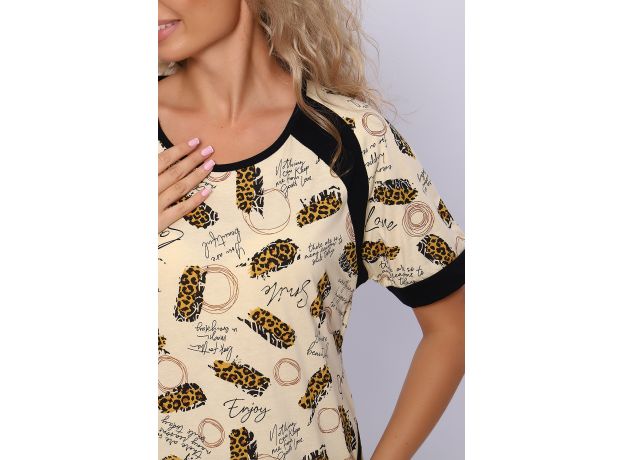 Туника свободного кроя с короткими рукавами - реглан на манжете. На полочке декоративные вставки из ткани - компаньона. Карманы в боковых швах.