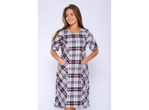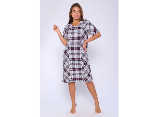 Туника полуприлегающего силуэта с короткими рукавами на манжетах. Полочка с рельефами и двумя накладными карманами. Неотъемлемый элемент домашнего гардероба.