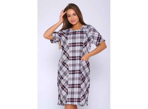 Туника полуприлегающего силуэта с короткими рукавами на манжетах. Полочка с рельефами и двумя накладными карманами. Неотъемлемый элемент домашнего гардероба.