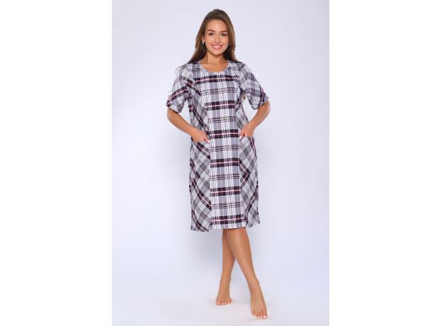 Туника полуприлегающего силуэта с короткими рукавами на манжетах. Полочка с рельефами и двумя накладными карманами. Неотъемлемый элемент домашнего гардероба.