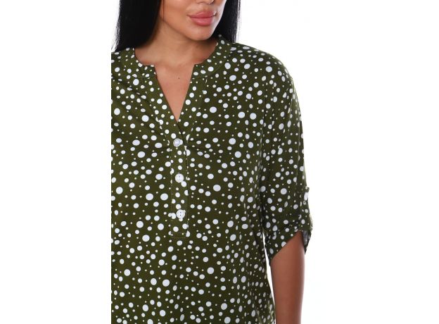 Туника полуприлегающего силуэта. Длина изделия середина бедра. Горловина оформлена фигурной обтачкой с декоративными пуговицами. Отличная туника на каждый день.