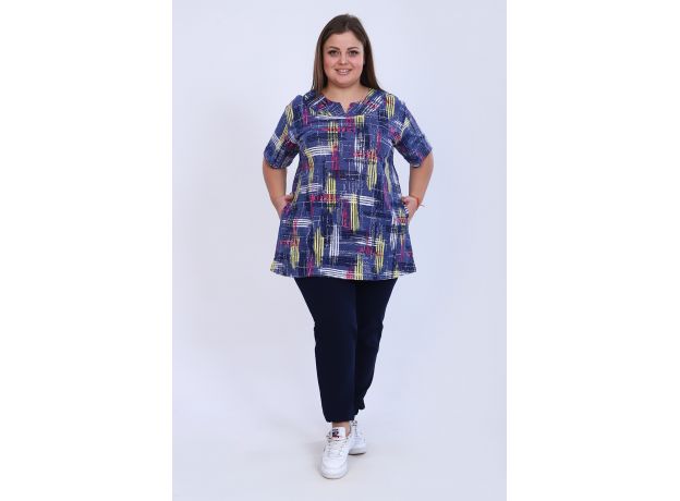Туника удлинённая с коротким рукавом. Туника будет хорошо смотреться на разных типах женской фигуры и подойдет для женщин всех возрастов. Изделие выполнено из 100% хлопка, благодаря чему модель абсолютно комфортна в носке, мягкая и приятна к телу, что прекрасно подойдет для дома, дачи и отдыха.