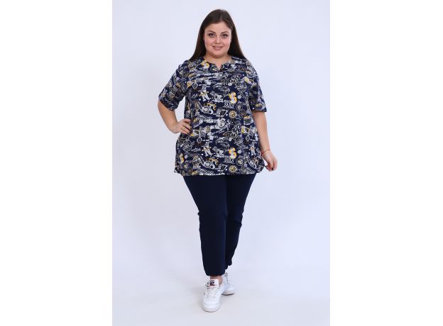 Туника удлинённая с коротким рукавом. Туника будет хорошо смотреться на разных типах женской фигуры и подойдет для женщин всех возрастов. Изделие выполнено из 100% хлопка, благодаря чему модель абсолютно комфортна в носке, мягкая и приятна к телу, что прекрасно подойдет для дома, дачи и отдыха.