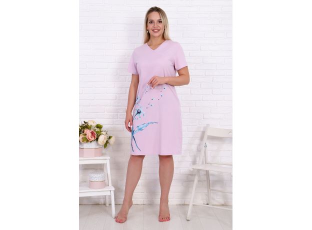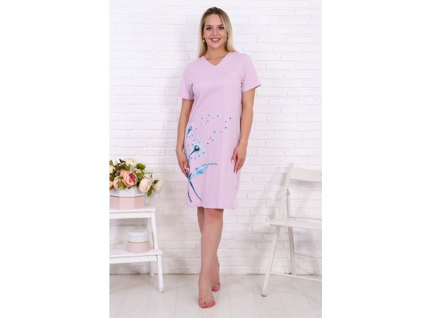 Туника женская из хлопкового трикотажного полотна со стильным принтом на полочке в виде одуванчиков. Рукава короткие на подгибке, горловина обработана кантом, отлично подойдет как для повседневной носки, так и для отдыха дома