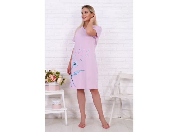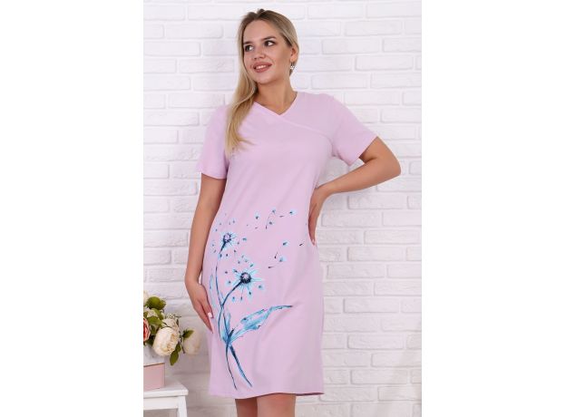 Туника женская из хлопкового трикотажного полотна со стильным принтом на полочке в виде одуванчиков. Рукава короткие на подгибке, горловина обработана кантом, отлично подойдет как для повседневной носки, так и для отдыха дома