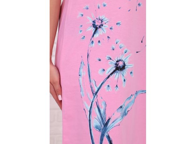Туника женская из хлопкового трикотажного полотна со стильным принтом на полочке в виде одуванчиков. Рукава короткие на подгибке, горловина обработана кантом, отлично подойдет как для повседневной носки, так и для отдыха дома