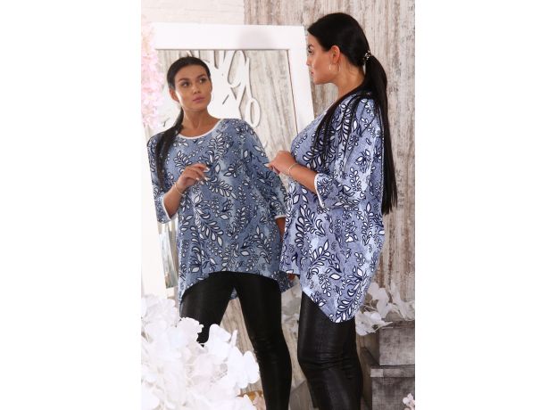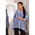 Туника А - образного силуэта выполнена из 100% хлопчатобумажного трикотажного набивного полотна. Горловина и рукав обработаны белым кантом. Данная модель, скрывающая недостатки и подчёркивающая достоинства фигуры, для удобства дополнена боковыми карманами.