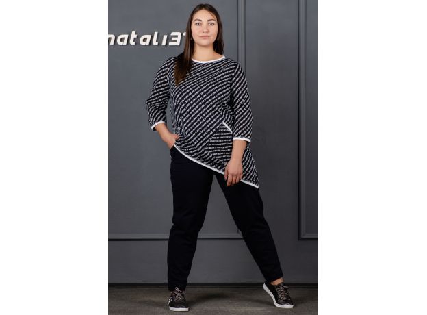 Туника выполнена из 100% хлопчатобумажного трикотажного набивного полотна. Горловина, рукав, карман и низ изделия обработаны белым кантом. Для удобства тунику дополняет накладной вместительный карман. Данная модель, скрывающая недостатки и подчёркивающая достоинства фигуры, будет радовать Вас своим комфортом.