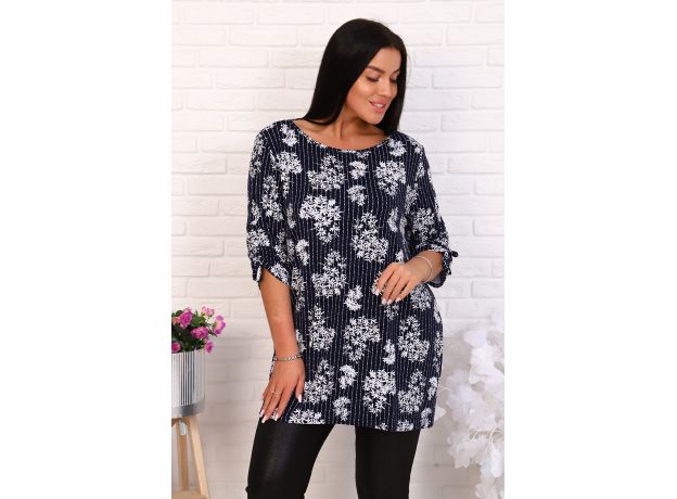 Женская туника полуприлегающего силуэта выполнена из вискозы с летним цветочным рисунком и тонкой изящной полоски, которая визуально делает Вас стройнее. На рукавах имеется затягивающаяся кулиса, горловина обработана окантовкой. Данная модель будет радовать своим комфортом каждый день.